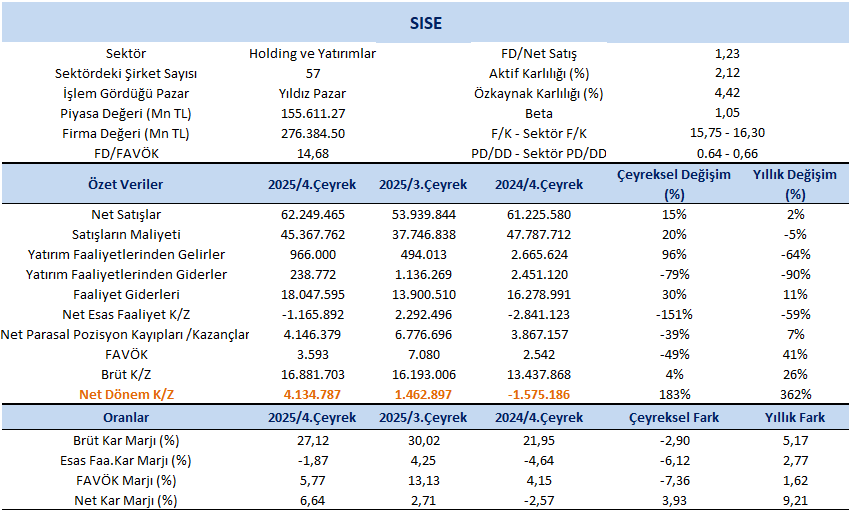 Şişe Cam (SISE) 2025 4.Çeyrek Bilanço Analizi