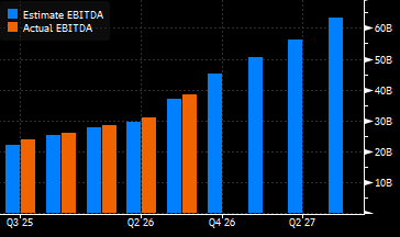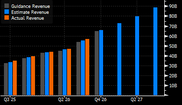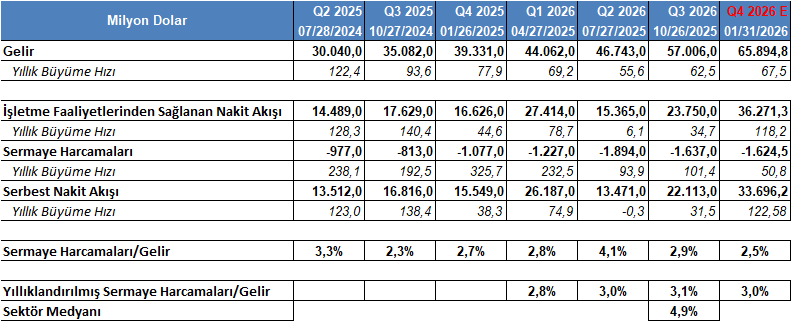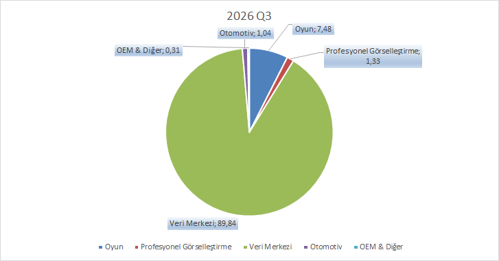 Şirketin segmentleri arasında, toplam gelire en büyük katkıyı veri merkezi vermeye devam ediyor. Mali üçüncü çeyrekte 51,2 milyar dolar gelir üreten segment, toplam gelirin %89,84’ünü temsil ederken yıllık bazda %66 oranında büyüme gösterdi. Piyasa tarafından bu segmentin mali dördüncü çeyrekte %69,5 oranında gelir büyümesi göstermesi bekleniyor.