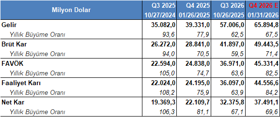 Buradan hareketle Bloomberg tarafından hazırlanan, Nvidia’nın mali dönem olarak 2026 yılı dördüncü çeyreklik finansallarına yönelik beklenti anketini incelediğimizde;