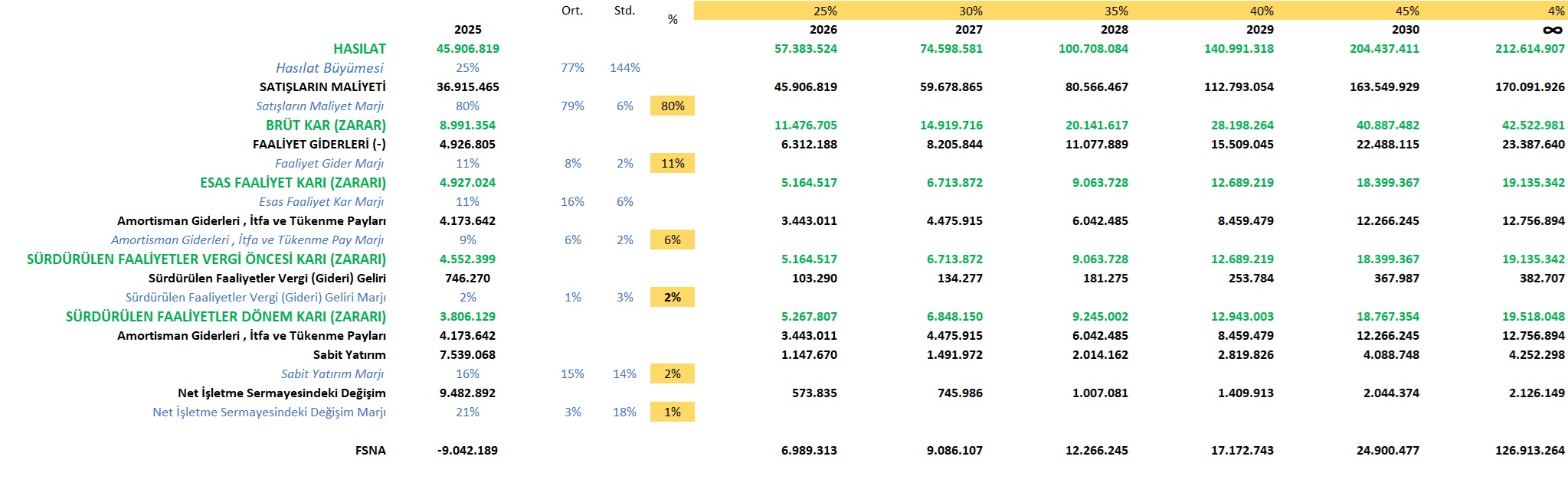 CIMSA’nın İndirgenmiş Nakit Akımlarına (İNA) göre değeri ise yaklaşık 71,5 TL çıkmaktadır…