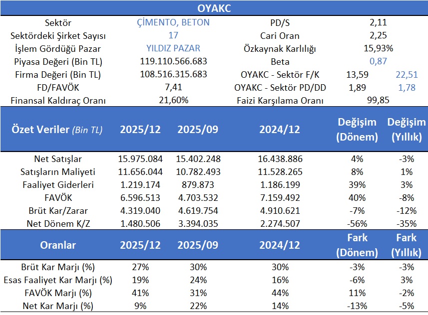 OYAK Çimento (OYAKC) 2025 4. Çeyrek Bilanço Analizi