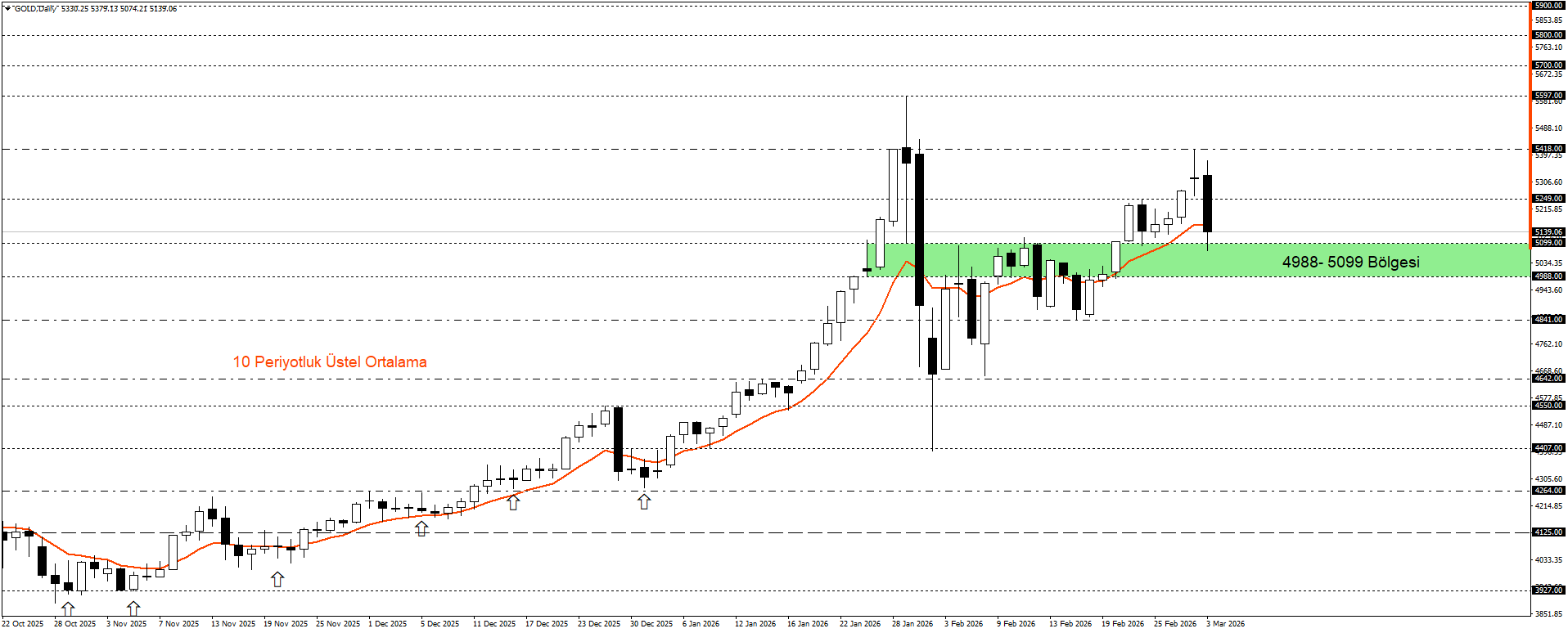 Buna karşılık satış baskısının devam etmesi ve 4988–5099 bölgesi altında günlük kapanışların görülmesi halinde düzeltmenin derinleşmesi beklenebilir. Böyle bir senaryoda 4841 seviyesi ön plana çıkabilir. Dolayısıyla kısa vadede 4988–5099 aralığı, yön tayini açısından kritik eşik olmaya devam ediyor.