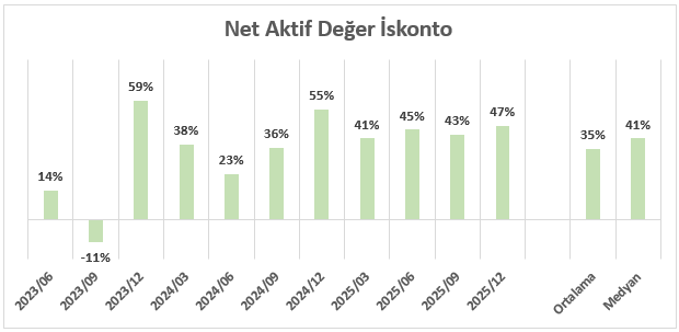 Bu tutara mevcut ödenmiş sermaye ve 2023/06 – 2025/12 dönemleri dikkate alınarak hesaplanan %41’lik Net Aktif Değer İskonto oranı uygulandığında hedef fiyat 29,06 TL olarak kaydedilmiştir. Bu değer, şirketin solo performansı (NAD) ve sektörel PD/NAD kıyaslama ile elde edilen ortalama hedef fiyat ile (29,41) ciddi bir uyum yakalamaktadır.