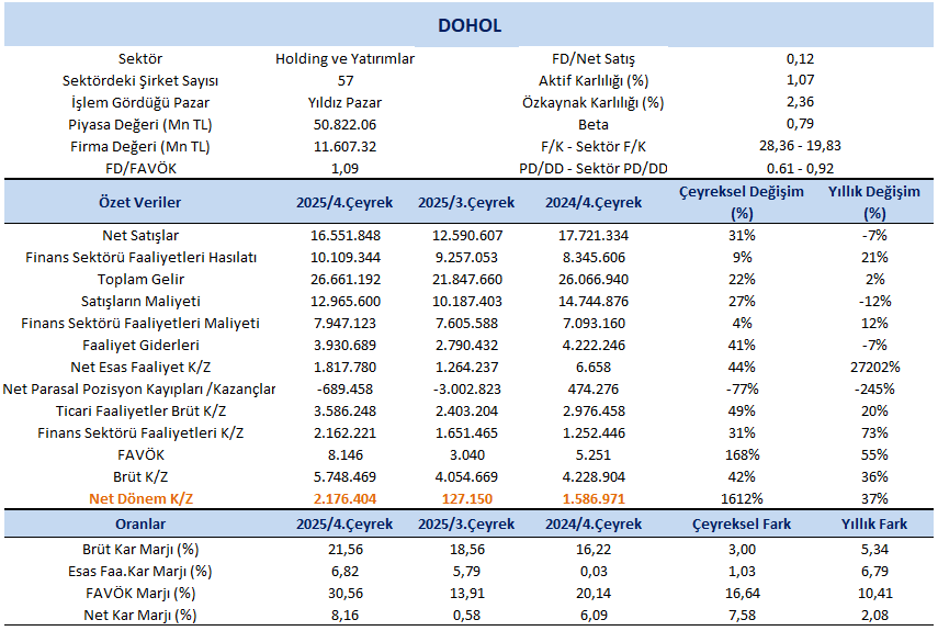 Doğan Holding (DOHOL) 2025 4.Çeyrek Bilanço Analizi