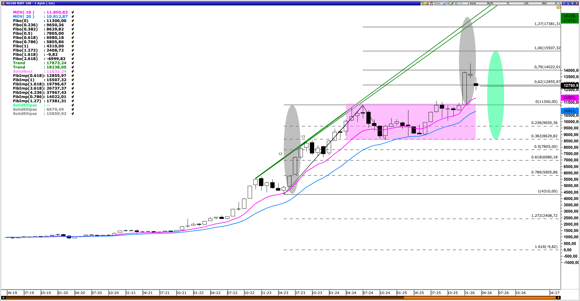 Diğer taraftan, 10.800 - 11.800 bölgesine doğru olası geri çekilmeler, mevcut görünümde zayıflama sinyali olarak izlenebilir. Ancak ana çerçevemizi aylık kapanışlar üzerinden değerlendirdiğimiz için, bu seviyenin altında kalıcılık oluşmadıkça mevcut trend görünümünde belirgin bir bozulmadan bahsetmiyor, ayrıca değer yatıcımlığı temasıyla bu geri çekilmeleri orta - uzun vadeli trend yolculuğunda önemli bir fırsat olduğunu düşünüyoruz..