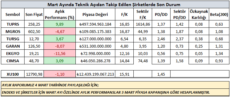 Mart ayına yönelik paylaşmış olduğumuz şirketlerin ilgili ay sergilediği performanslara ulaşacağınız tablo aşağıdaki gibidir.