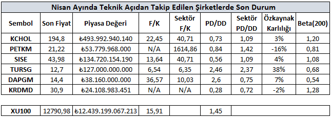 Nisan ayı dinamiklerinde teknik göstergelerle uyumlu çalışabileceğini düşündüğümüz şirketlere yönelik genel düşüncelerimizi aşağıdaki bölümde ayrıntılı bir şekilde sizlere aktaracağız. Bu şirketlere yönelik genel bilgilere ise yukarıdaki tablodan ulaşabilirsiniz.