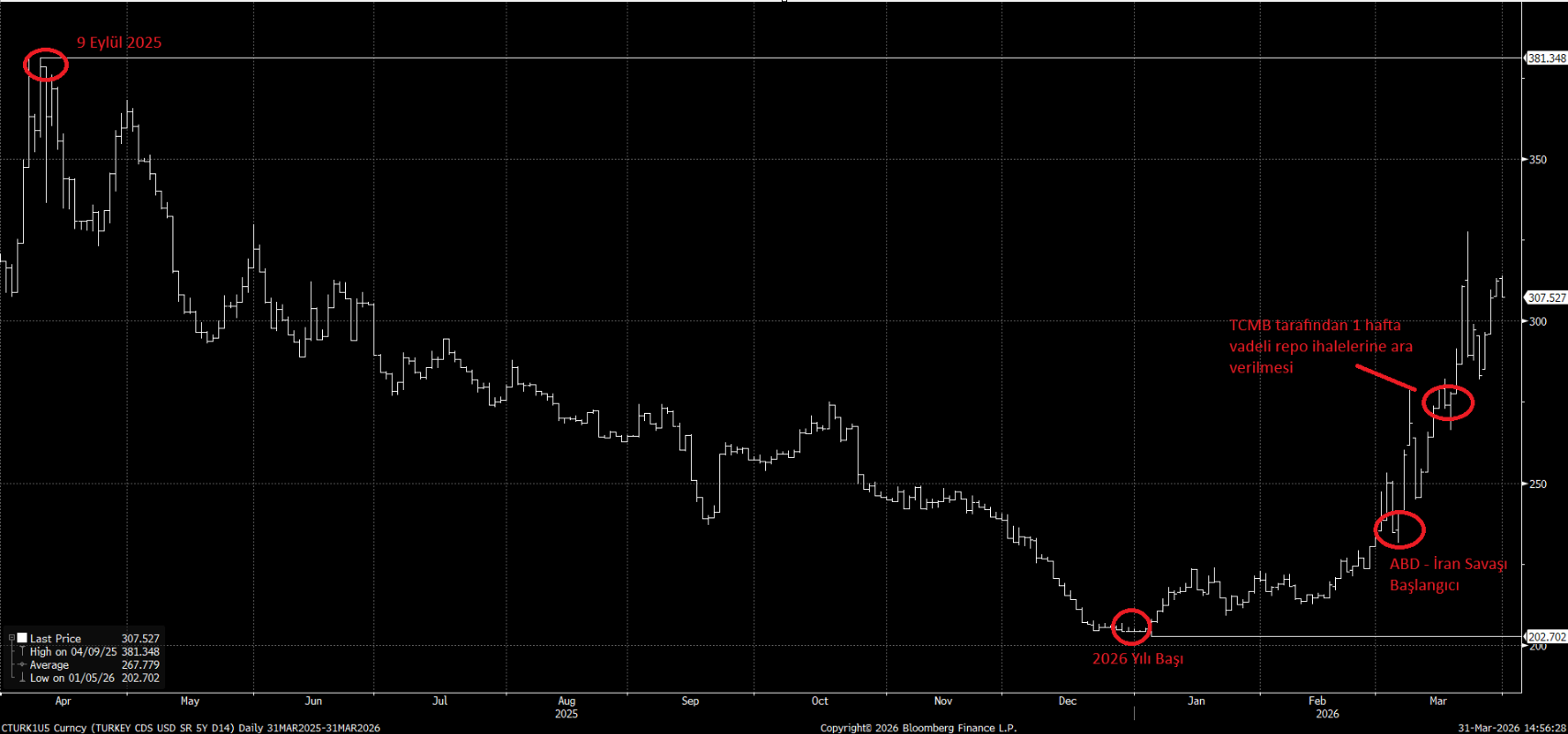 Bu dönemde öne çıkan başlıklar arasında yüksek enflasyon, dış finansman ihtiyacı, jeopolitik riskler ve CDS hareketleri yer almaktadır. Orta Doğu kaynaklı gelişmeler ve enerji fiyatlarındaki oynaklık, Türkiye açısından enflasyon ve cari denge üzerinden ilave baskı yaratırken, dezenflasyon sürecini zorlaştırabilecek bir unsur olarak öne çıkmaktadır.