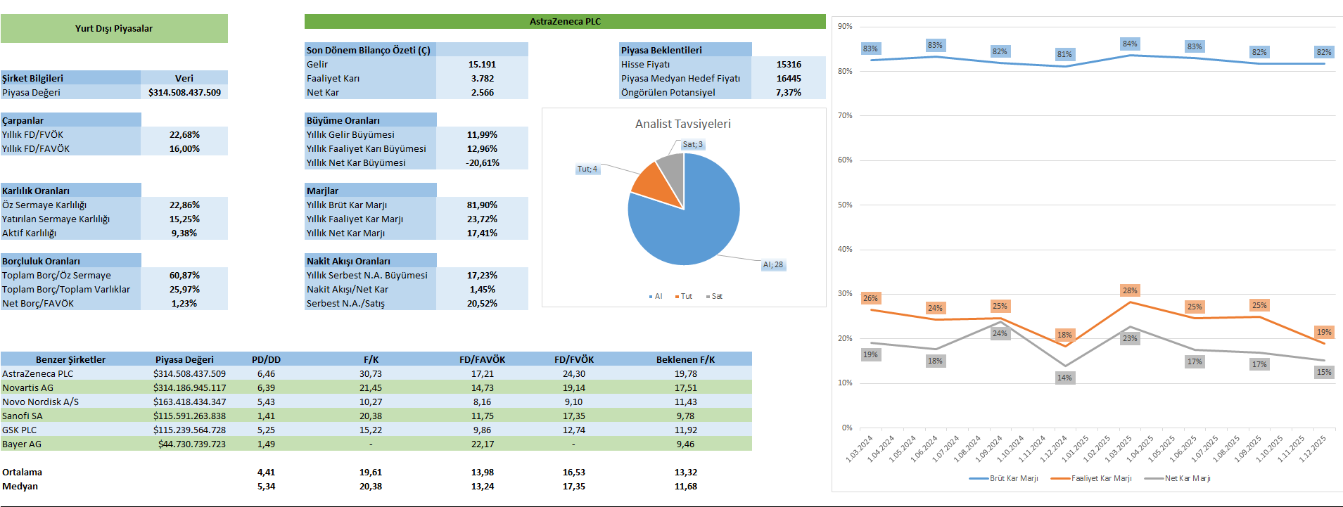 Şirketin karlılık rasyoları, sermaye verimliliğinde önemli bir iyileşmeye işaret etmektedir. Özsermaye karlılığındaki ve yatırılan sermayenin karlılığındaki artış, AstraZeneca’nın kaynaklarını daha etkin kullandığını göstermektedir.
