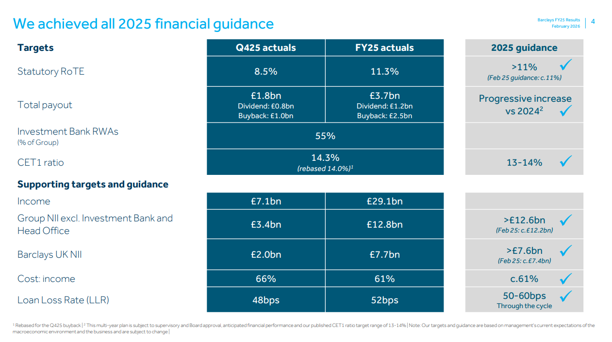 Barclays 2025 Finansal Sonuçları: Tüm Hedefler Başarıyla Gerçekleştirildi