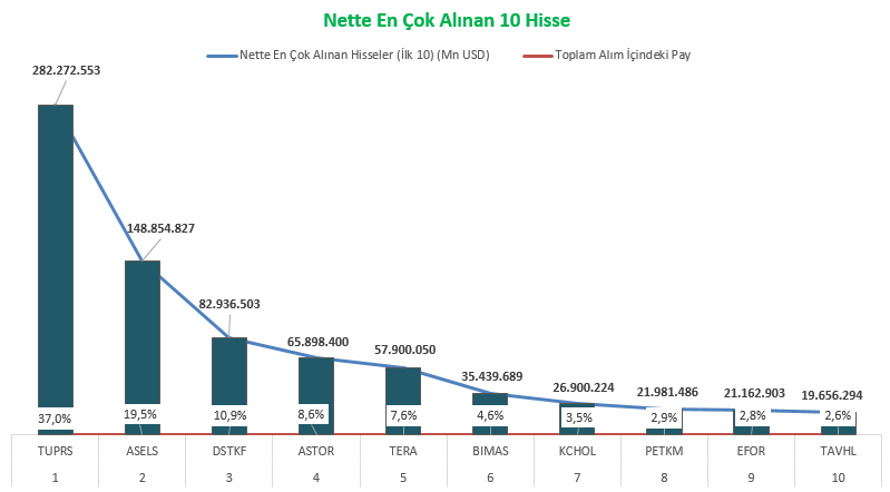 En çok alım ve satım yapılan hisseler aşağıdaki tablolarda belirtilmiştir:
