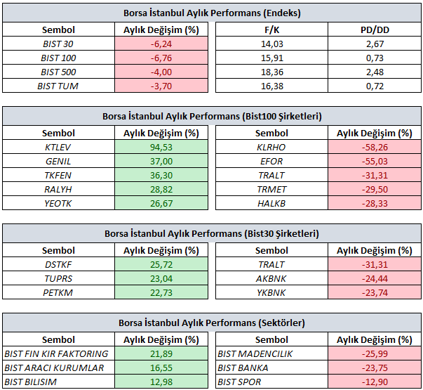 Not: Tablolar Borsa İstanbul verileri baz alınarak hazırlanmıştır.