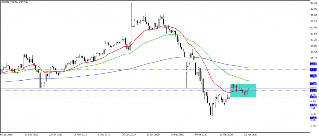 GARAN yakın vade kontratı 6,76’dan başlayan düzeltmesini 7,95 – 8,70 aralığına taşıdıktan sonra yatay seyre geçti. Önümüzdeki süreçte 20 periyotluk üssel hareketli ortalamanın dahil olduğu, 50 periyotluk üssel hareketli ortalamanın da üstten sınırlarını belirlemeye yaklaştığı söz konusu bölgenin tutumu önem kazanabilir.