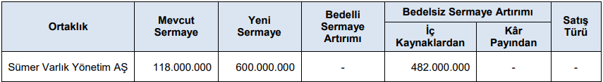 Sermaye Piyasası Kurulu'nun II-18.1 sayılı Kayıtlı Sermaye Sistemi Tebliği'nin 6'ncı maddesinin 6'ncı fıkrasında yer alan "Her tür iç kaynak ile kar payının sermayeye ilave edilmesi suretiyle ve birleşme, bölünme ve benzeri genel kurul kararı gerektiren işlemler neticesinde, her bir tavan kapsamında bir defaya mahsus olmak üzere kayıtlı sermaye tavanı aşılabilir." hükmü çerçevesinde;