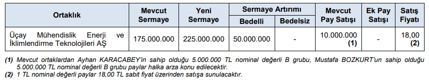 → SPK, Üçay Mühendislik Enerji ve İklimlendirme Teknolojileri A.Ş’nin halka arzına onay verdi.