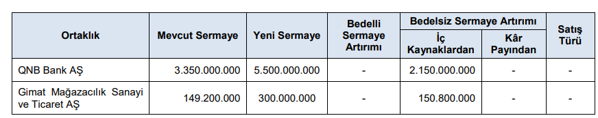 → SPK, QNB Bank ve Gimat Mağazacılık bedelsiz sermaye artırımlarına onay verdi.