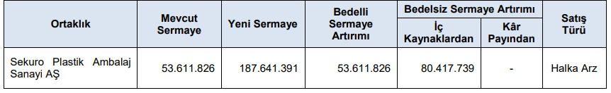 → SPK, Sekuro Plastik'in pay ihracına onay verdi.