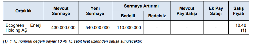 ENERY: Şirketimizin 06.10.2025 tarihli Yönetim Kurulu kararı ile başlatılan pay geri alım programı kapsamında; 16.10.2025 tarihinde Borsa İstanbul A.Ş. nezdinde pay başına 9,45 TL - 9,49 TL fiyat aralığından (ağırlıklı ortalama 9,469 TL) toplam 700.000 adet pay geri alınmıştır. Şirketimizin 25.12.2023, 20.03.2025 ve 29.08.2025 tarihli Yönetim Kurulu kararları ile geri alınan paylarla birlikte sahip olduğu ENERY payları toplamı 269.049.686 adede ulaşmıştır. (Şirket sermayesine oranı %2,9894)