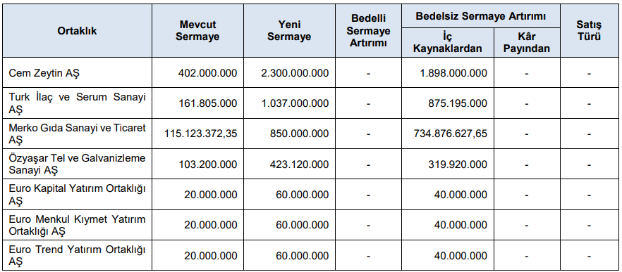 EUYO: Euro Menkul Kıymet Yatırım Ortaklığı AŞ'nin sermayesi 20.000.000 TL'den 60.000.000 TL'ye artırılacak. 40.000.000 TL tutarında bedelsiz sermaye artırımı iç kaynaklardan sağlanacak.