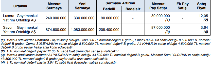 → SPK, Luxera Gayrimenkul Yatırım Ortaklığı A.Ş ve Savur Gayrimenkul Yatırım Ortaklığı A.Ş halka arzlarına onay verdi.