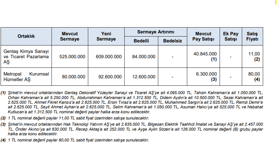 → SPK, Gentaş Kimya Sanayi ve Ticaret Pazarlama AŞ ve Metropal Kurumsal Hizmetler AŞ’nin halka arzlarına onay verdi.