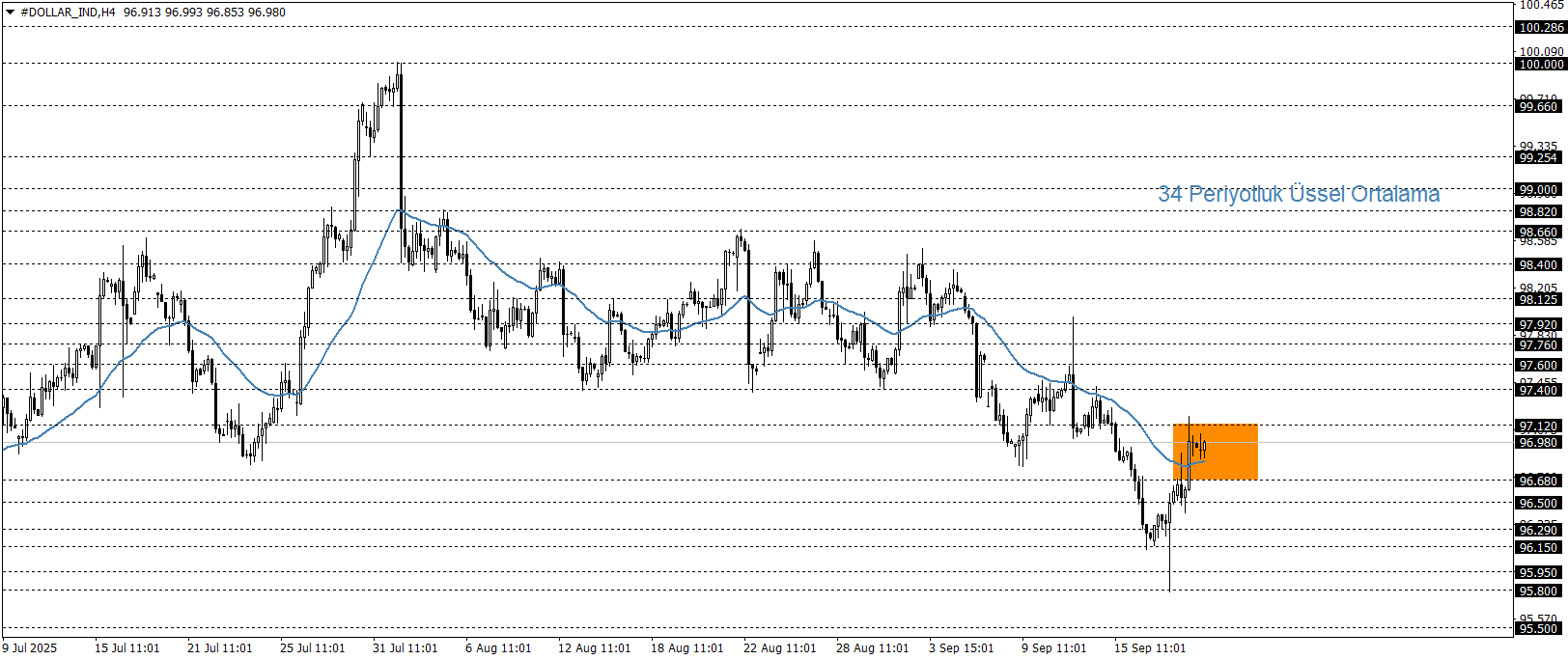 Klasik Dolar Endeksi, güncel tabloda 2 günlük toparlanma eğilimini sürdürüyor. Endeks, ortalamanın da desteklediği 96,68– 97,12 bölgesi ve üstünde kapanışlar gerçekleştirdiği sürece, 97,40 seviyesine doğru hareketlerini destekleyebilir. Bu seviye aşılırsa 97,60 direnç seviyesi olarak takip edilebilir. Ancak, 96,68– 97,12 bölgesinin altında kalıcılık sağlanması durumunda, endekste 96,50 seviyesine doğru geri çekilme yeniden gündeme gelebilir.