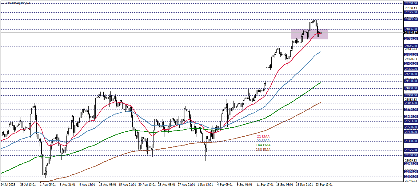 NASDAQ100 endeksi 4 saatlik grafikte takip ettiğimiz göstergelerin içinde işlem görüyor. Endeks, 24750 – 24886 bölgesinde dalgalandığı sürece, karar aşaması senaryosu izlenebilir.