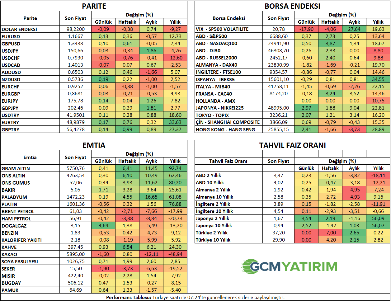 ABD endeks vadelileri pozitif eğilimi takip etti. Nasdaq 0,5% civarında yükseliş gösterdi. ABD 10 yıllık tahvil faizi 4,02% bölgesinde seyrediyor. Dolar endeksi Cuma günkü toparlanma çabası ardından sınırlı kayıp gösterdi.