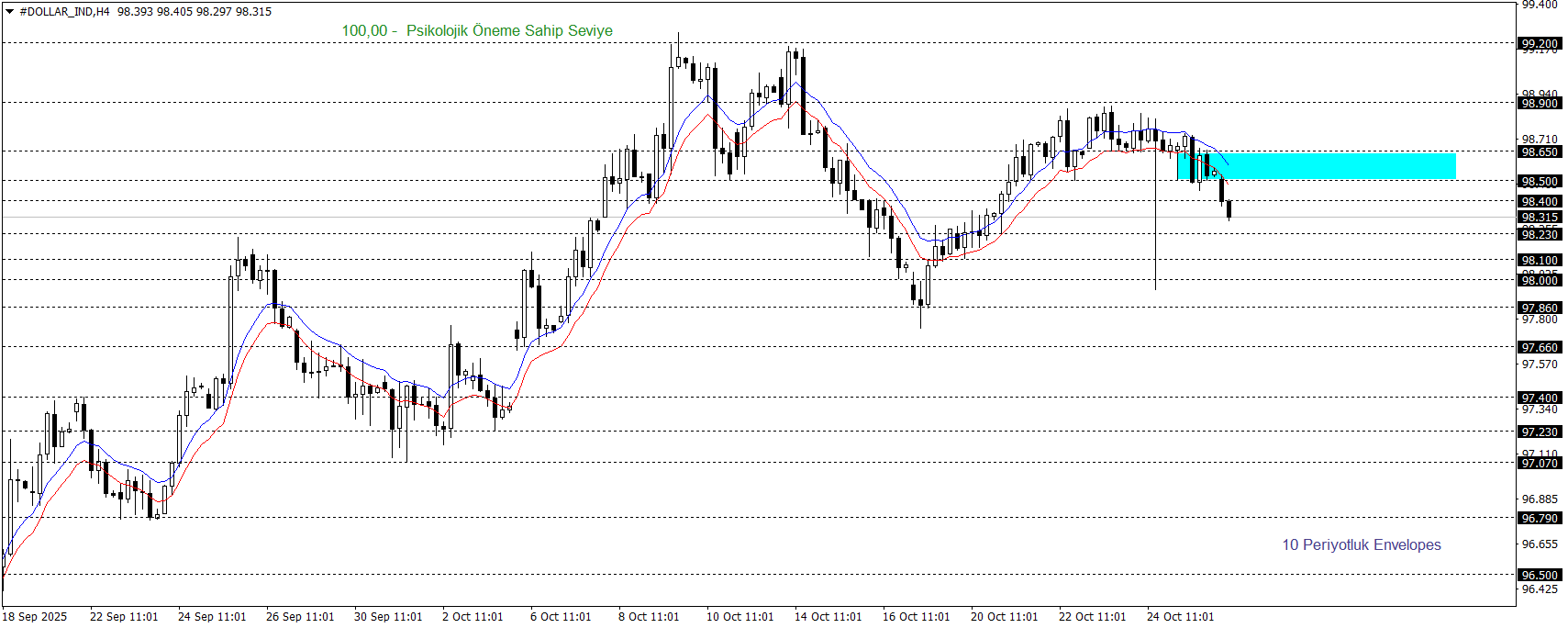 Klasik Dolar Endeksi, kısa vadede endeksin 98,50 – 98,65 bölgesinin altında fiyatlanması, yukarı yönlü momentumun zayıfladığını ve 97,86 seviyesinin yeniden test edilme riskini artırabilir. Mevcut görünümde, 98,50 – 98,65 altında kalındığı sürece 100 seviyesine doğru yükseliş ihtimalinin zayıfladığına işaret ediyor. Bu nedenle, endekste geri çekilme eğilimi ön planda kalabilir. Öte yandan, 98,50 – 98,65 seviyesi üzerindeki kalıcılık 100 seviyesine hareketi tekrar gündeme getirebilir.