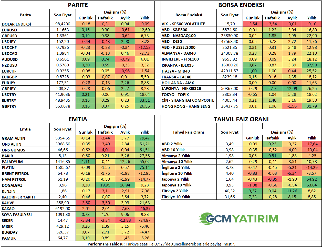 ABD ile Çin arasında sağlanan ön anlaşma ardından haftanın ilk işlem gününde hisse piyasalarının pozitif seyrettiğini izledik. ABD’de sağlanan kazançlar ardından Asya piyasaları Salı gününe çok daha temkinli bir seyir ile başladı. Endekslerde yataya yakın seyir izlenirken, ABD endeks vadelileri de benzer bir tutum izledi. ABD 10 yıllık tahvil faizi 3,98% bölgesinde seyrediyor. Dolar endeksi dünkü satışlar ardından tekrar gerileme eğilimi gösterdi.