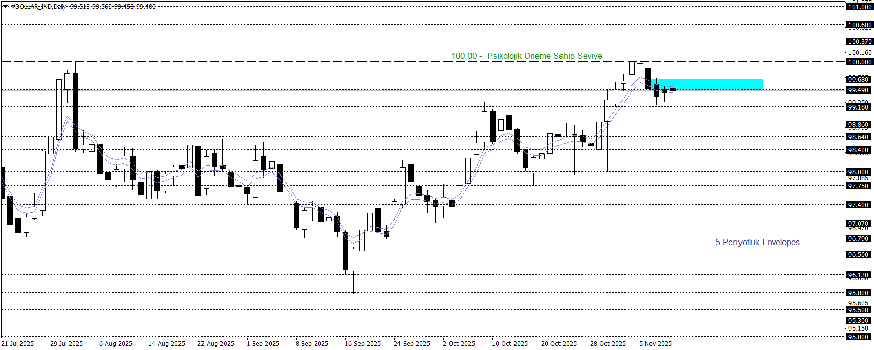 Klasik Dolar Endeksi, kısa vadede 99,49 – 99,68 bölgesi altında seyretmeye devam ederken, bu durum yukarı yönlü momentumu zayıflatıyor ve 98,00 seviyesinin yeniden test edilme riskini artırıyor. Söz konusu bölgenin altında kalındığı sürece, endeksin yukarı doğru hareket olasılığı sınırlı kalabilir ve geri çekilme eğilimi ön planda olabilir. Ancak 99,49 – 99,68 bölgesi üzerinde kalıcılık sağlanması halinde, 100,68 seviyesine doğru bir hareket yeniden gündeme gelebilir.