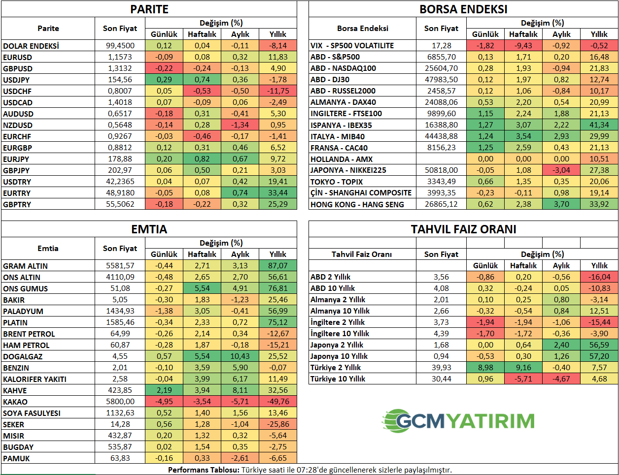 Asya endeksleri hafta ortasında karışık bir seyir izlerken, ABD endeks vadelileri Fed’in faiz indirimi ihtimalinin güç kazanması ile birlikte yükseliş eğilimi gösterdi. 10 yıllık tahvil faizi dünkü düşüş ardından bir miktar toparlansa da, şu sıralar 4,08% bölgesinde hareket ediyor. Dolar endeksi benzer şekilde dünkü düşüş ardından sınırlı toparlanma gösterdi.