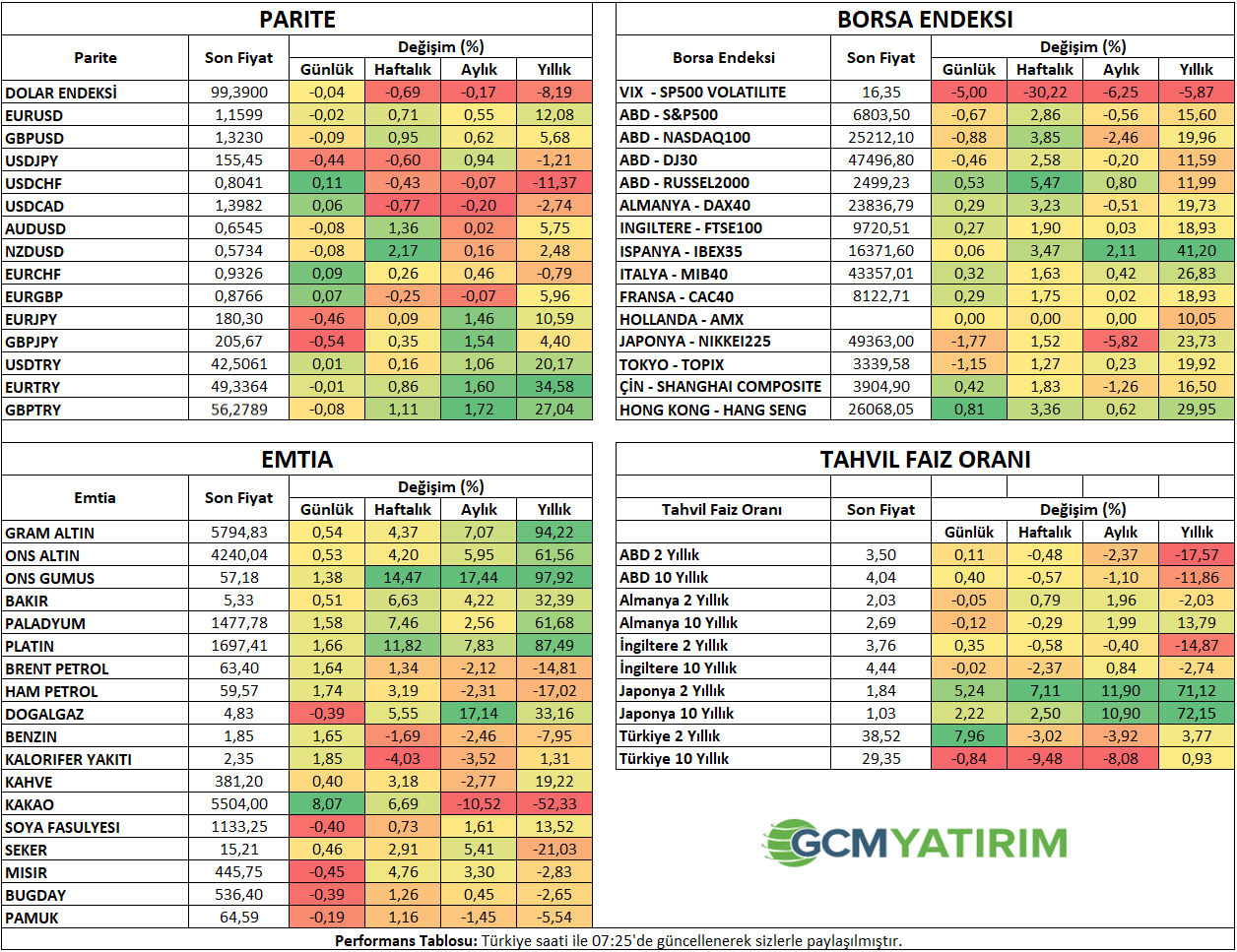 İlgili sayfada yer alan ekonomik takvim içeriği, güvenilir yurt dışı haber ve veri sağlayıcılardan temin edilmektedir. Ekonomik takvim içeriğinde yer alan haberler, haberlerin açıklanma tarihi ve zamanı, önceki, beklenti ve açıklanan rakamlarda gerçekleştirilecek olası değişiklikler, veri sağlayıcı kurumlar tarafından yapılmaktadır. Benzeri durumlardan kaynaklanacak olası değişimlerden GCM Yatırım Menkul Değerler A.Ş. sorumlu tutulamaz.