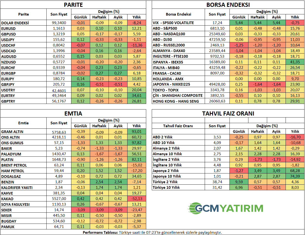 İlgili sayfada yer alan ekonomik takvim içeriği, güvenilir yurt dışı haber ve veri sağlayıcılardan temin edilmektedir. Ekonomik takvim içeriğinde yer alan haberler, haberlerin açıklanma tarihi ve zamanı, önceki, beklenti ve açıklanan rakamlarda gerçekleştirilecek olası değişiklikler, veri sağlayıcı kurumlar tarafından yapılmaktadır. Benzeri durumlardan kaynaklanacak olası değişimlerden GCM Yatırım Menkul Değerler A.Ş. sorumlu tutulamaz.