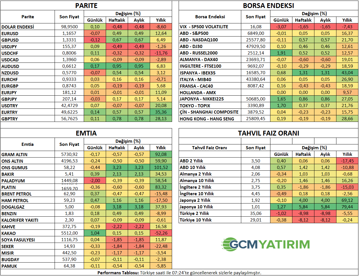 Altın ve gümüş tarafında ise Fed beklentileri destekli yükseliş sonrasında duraksama olduğu görülüyor. Özellikle gümüş, yükseliş eğilimi ile hafta içinde rekor yüksek seviyeleri test etmişti.