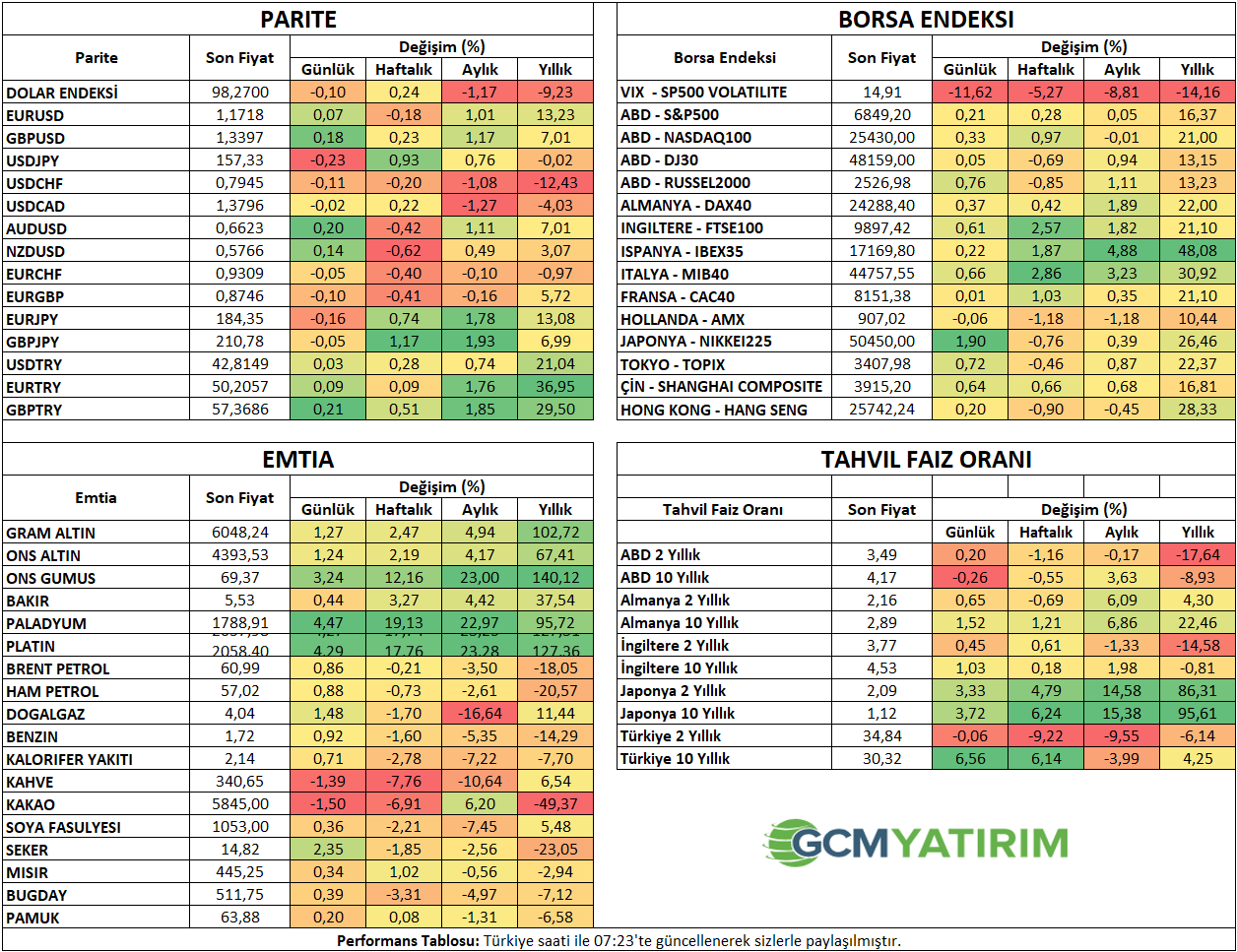 ABD tarafında ise teknoloji sektörüne yönelik şüphelerin ara ara ön plana çıkmasına rağmen, Fed’e yönelik faiz indirim beklentilerinin gücünü koruması risk iştahını olumlu şekilde etkiledi. Bu durum hisse senetlerinin yanı sıra, özellikle metallerde destekleyici etki oluşturdu.