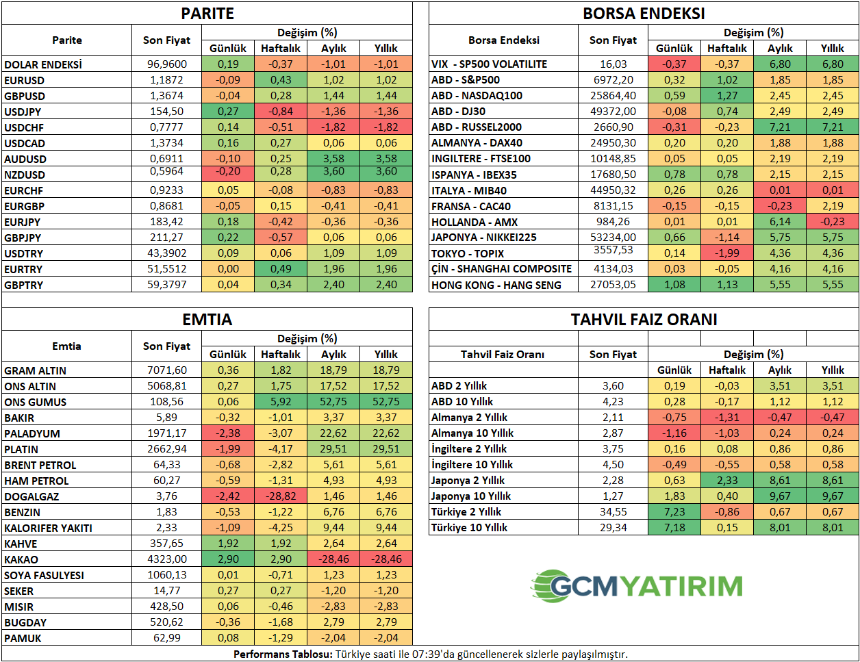 Japon Nikkei endeksi 0,5%’nin üzerinde kazanım yaşarken, Hong Kong endeksinde yükseliş 1%’i geçti. Şangay’da ise Pazartesi gününün kapanış seviyelerine yakın fiyatlamalar oluştu. ABD endeks vadelilerinde Nasdaq 0,5% kadar yükselişle öne çıktı. ABD 10 yıllık tahvil faizi 4,22% bölgesinde seyrediyor. Dolar endeksi Eylül ayından bu yana görülen en düşük seviyelere yakın kalmaya devam etti.