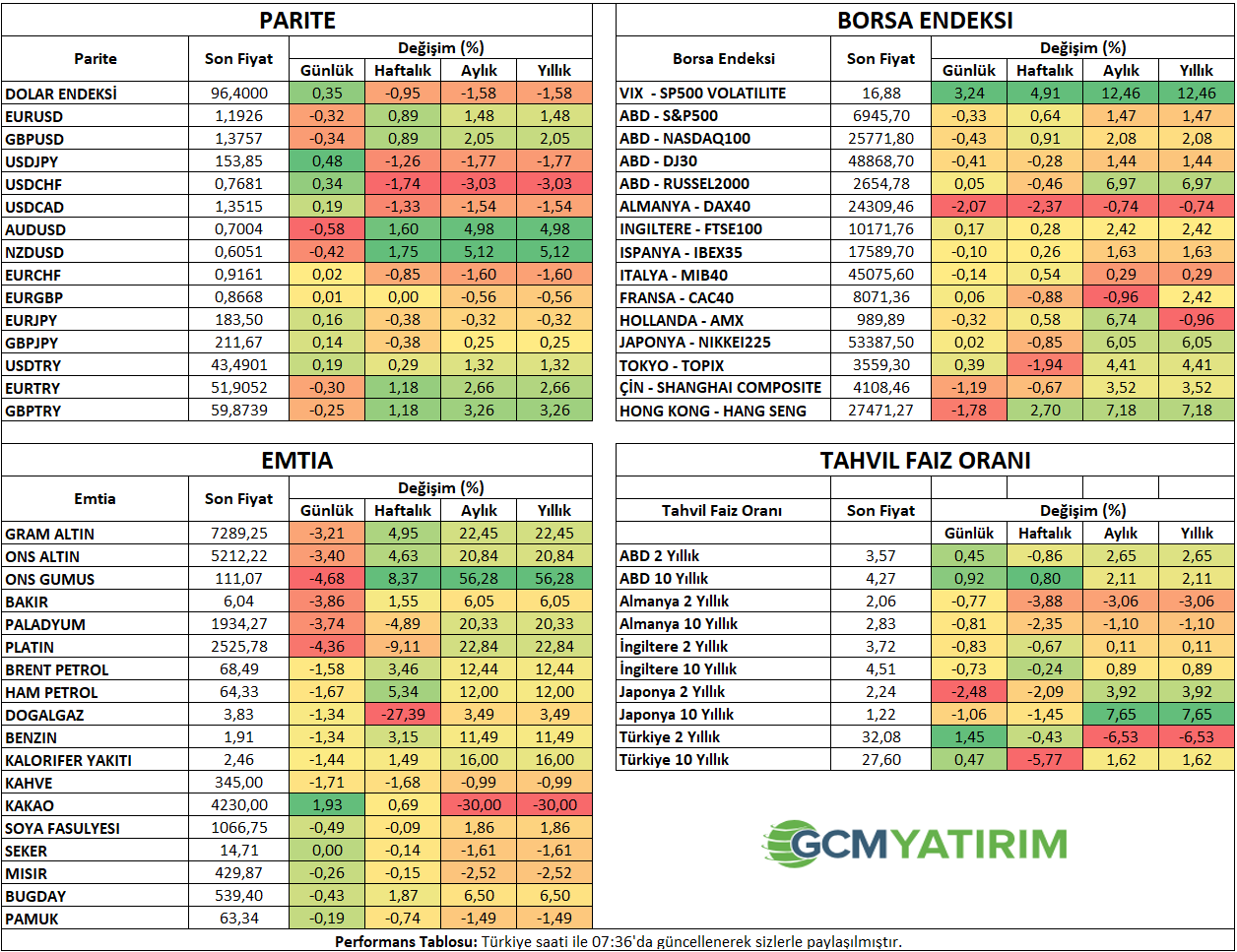 İlgili sayfada yer alan ekonomik takvim içeriği, güvenilir yurt dışı haber ve veri sağlayıcılardan temin edilmektedir. Ekonomik takvim içeriğinde yer alan haberler, haberlerin açıklanma tarihi ve zamanı, önceki, beklenti ve açıklanan rakamlarda gerçekleştirilecek olası değişiklikler, veri sağlayıcı kurumlar tarafından yapılmaktadır. Benzeri durumlardan kaynaklanacak olası değişimlerden GCM Yatırım Menkul Değerler A.Ş. sorumlu tutulamaz.