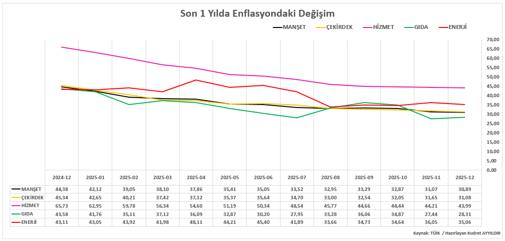 Aylık TÜFE değişimi 0,89% olmuş, Kasım’a göre sınırlı bir yükseliş kaydedilmişti. Buna rağmen bu ortan 2019’dan beri en düşük TÜFE değişimlerinden biri olmuştu.