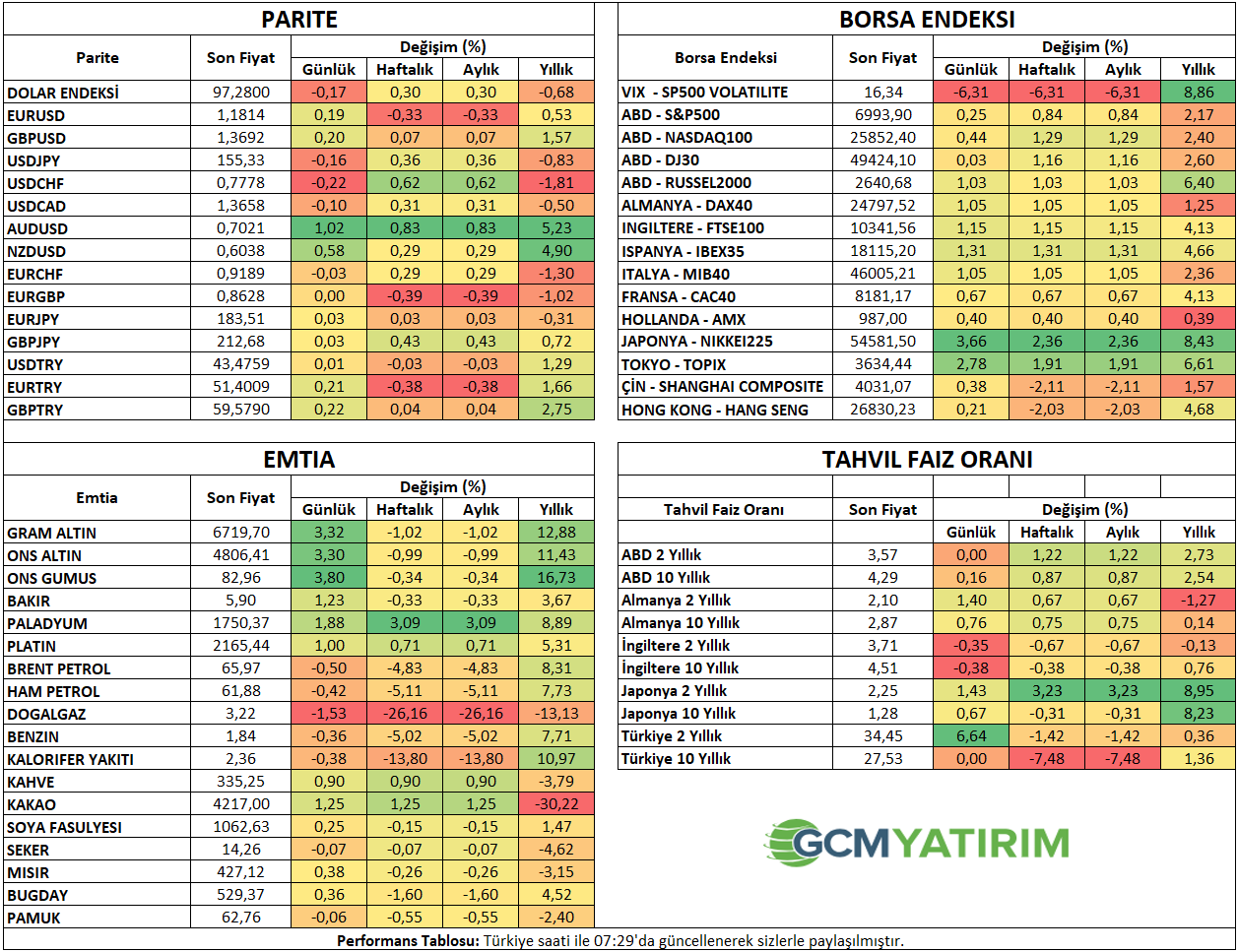 İlgili sayfada yer alan ekonomik takvim içeriği, güvenilir yurt dışı haber ve veri sağlayıcılardan temin edilmektedir. Ekonomik takvim içeriğinde yer alan haberler, haberlerin açıklanma tarihi ve zamanı, önceki, beklenti ve açıklanan rakamlarda gerçekleştirilecek olası değişiklikler, veri sağlayıcı kurumlar tarafından yapılmaktadır. Benzeri durumlardan kaynaklanacak olası değişimlerden GCM Yatırım Menkul Değerler A.Ş. sorumlu tutulamaz.