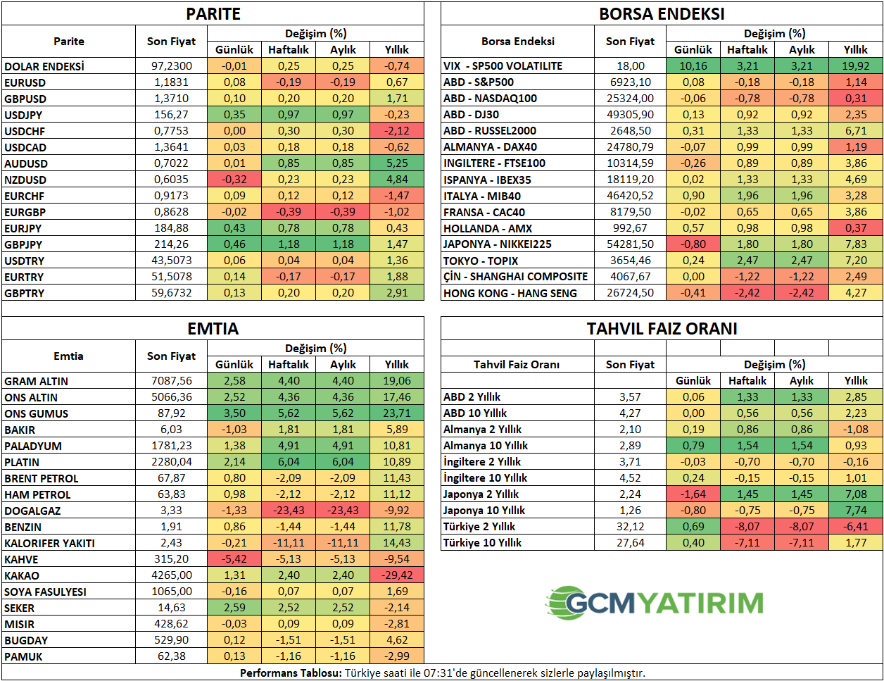 İlgili sayfada yer alan ekonomik takvim içeriği, güvenilir yurt dışı haber ve veri sağlayıcılardan temin edilmektedir. Ekonomik takvim içeriğinde yer alan haberler, haberlerin açıklanma tarihi ve zamanı, önceki, beklenti ve açıklanan rakamlarda gerçekleştirilecek olası değişiklikler, veri sağlayıcı kurumlar tarafından yapılmaktadır. Benzeri durumlardan kaynaklanacak olası değişimlerden GCM Yatırım Menkul Değerler A.Ş. sorumlu tutulamaz.