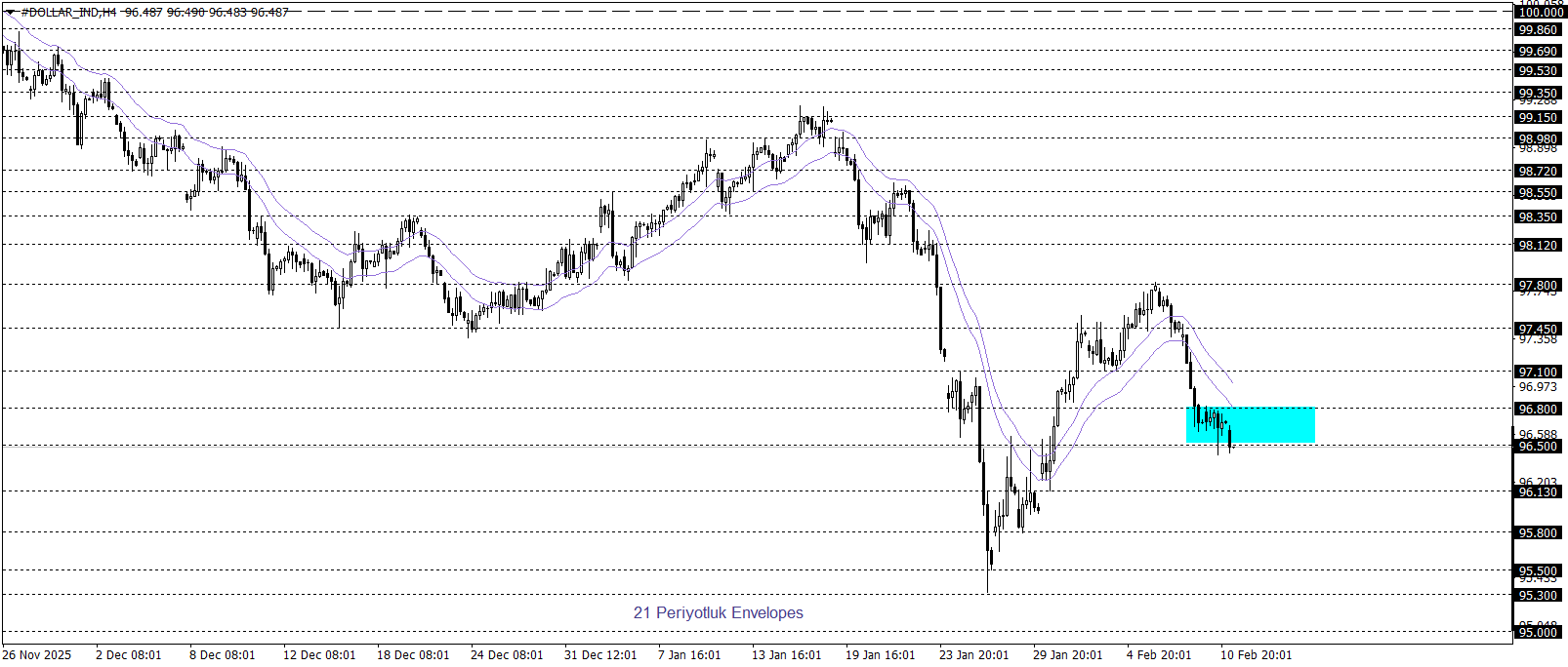 Klasik Dolar Endeksi 96,45 seviyeleri etrafında dengelenirken, kısa vadeli teknik görünüm aşağı yönlü eğilimin korunduğuna işaret ediyor. 96,50–96,80 bölgesi altında fiyatlamanın sürmesi halinde, endekste 95,00 seviyesine doğru bir çekilme hareketi sergilenmesi olası görünüyor. Öte yandan, bu kritik bölgenin yukarı yönlü kırılması durumunda, tepkinin artmasıyla birlikte 100,00 seviyesine doğru hareketin gündemde kalacağı değerlendirilmektedir.