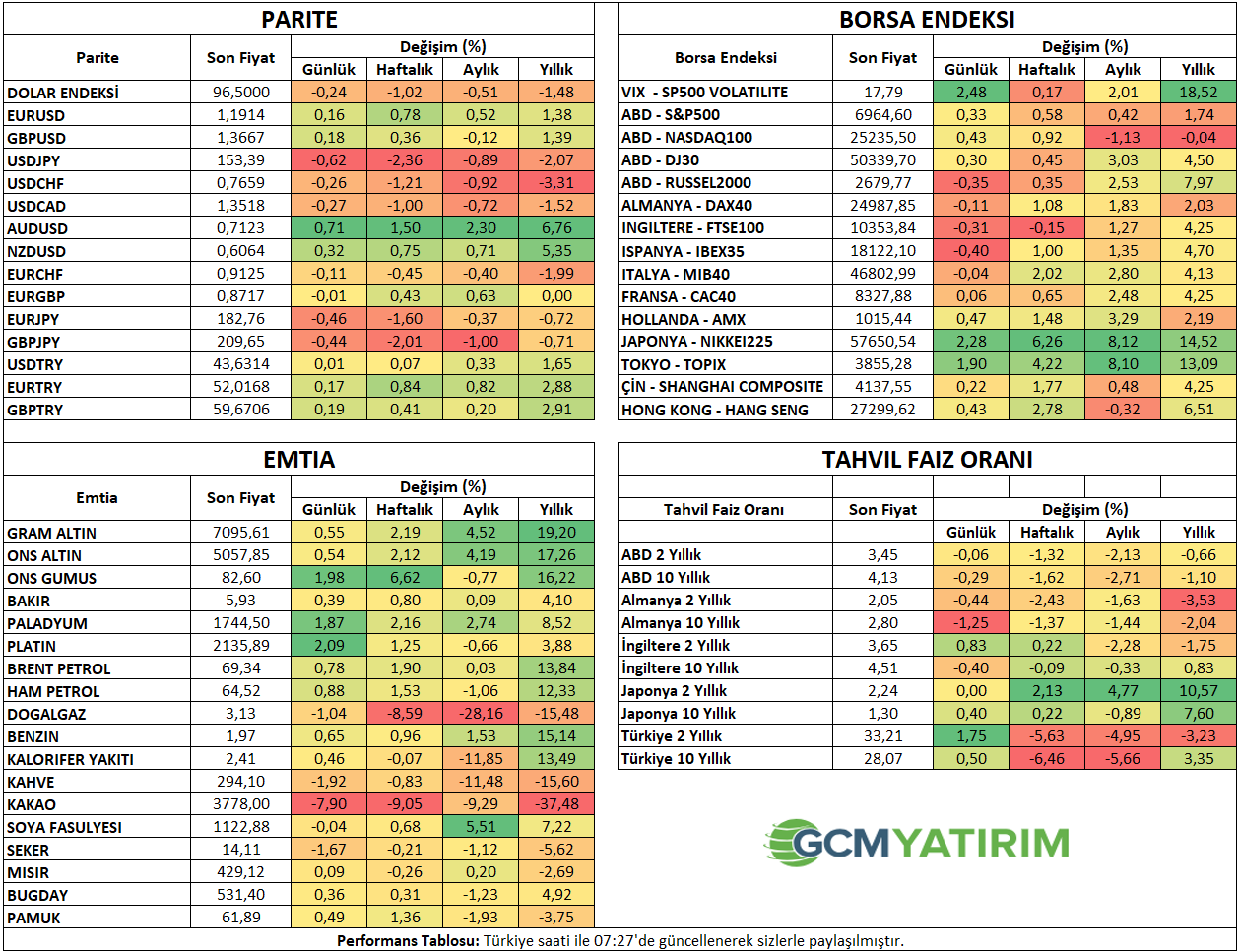 İlgili sayfada yer alan ekonomik takvim içeriği, güvenilir yurt dışı haber ve veri sağlayıcılardan temin edilmektedir. Ekonomik takvim içeriğinde yer alan haberler, haberlerin açıklanma tarihi ve zamanı, önceki, beklenti ve açıklanan rakamlarda gerçekleştirilecek olası değişiklikler, veri sağlayıcı kurumlar tarafından yapılmaktadır. Benzeri durumlardan kaynaklanacak olası değişimlerden GCM Yatırım Menkul Değerler A.Ş. sorumlu tutulamaz.