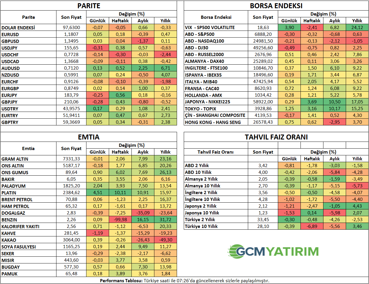 Endeksler genel olarak pozitifti. Japon Nikkei endeksi ve Hong Kong endeksi yükselirken, Çin anakara endeksi gerileyerek görünümü karışık hale getiren taraf oldu. ABD endeks vadelileri dün kayıplarının bir kısmını telafi etmesinin ardından vadeli işlemlerde geriledi.