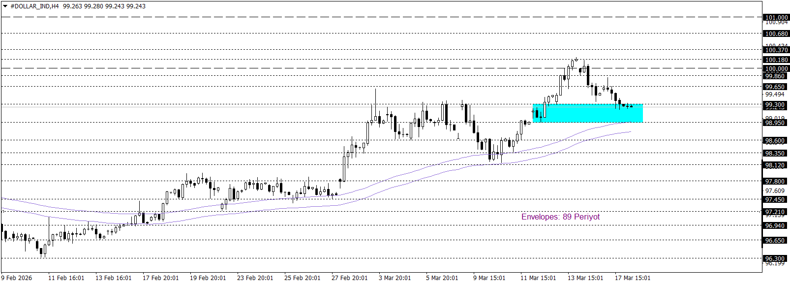 Klasik Dolar Endeksi 99,30 seviyesi çevresinde yukarı yönlü eğilimini korurken, kısa vadeli teknik görünüm yukarı yönlü hareketine işaret etmektedir. 99,30–98,95 bölgesinde ve üzerinde kalıcılığın sürmesi, tepki hareketinin canlı kalmasını sağlayarak endeksin 101,00 seviyesine doğru kademeli bir tepki hareketi geliştirmesine zemin hazırlayabilir. Buna karşın, söz konusu bölgenin aşağı yönlü ihlal edilmesi ve bu seviye altında fiyatlamaların yerleşik hâle gelmesi durumunda, satış baskısının belirginleşerek 98,85 seviyesine doğru daha derin bir düzeltme sürecini gündeme taşıması olası görünmektedir.