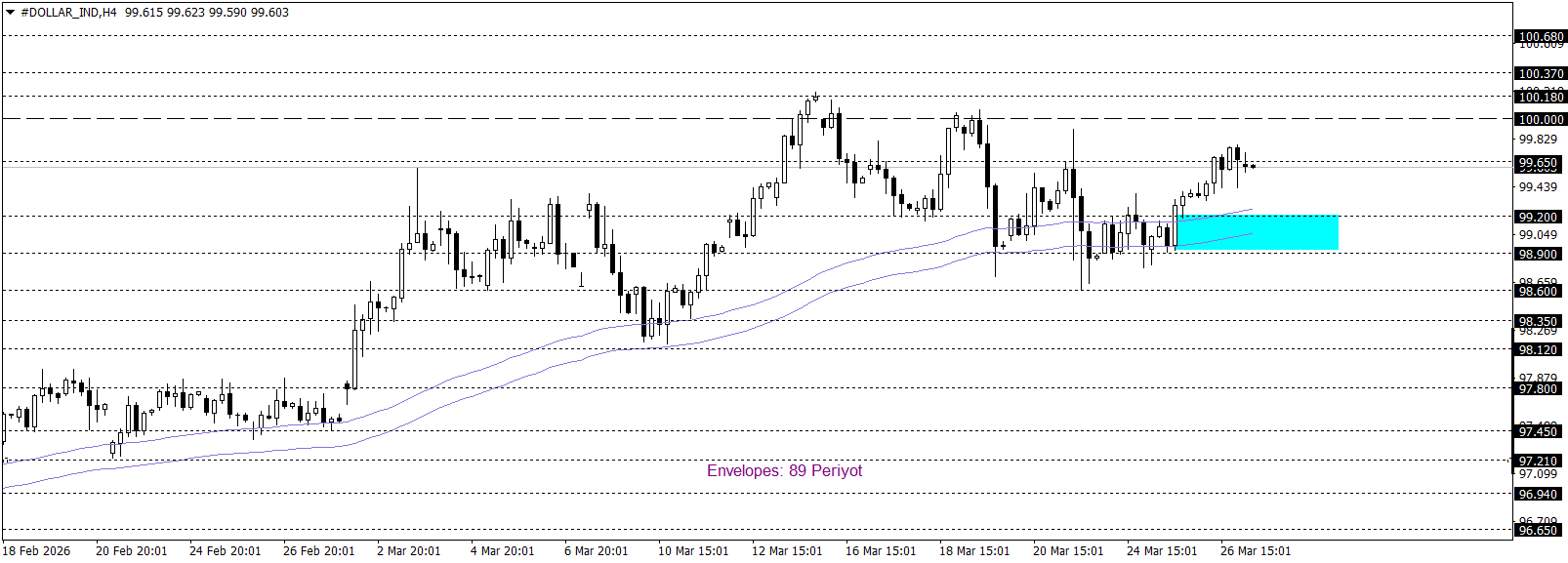 Klasik Dolar Endeksi 99,65 seviyesi çevresinde yukarı yönlü eğilimini korurken, kısa vadeli teknik görünüm yukarı yönlü hareketine işaret etmektedir. 98,90–99,20 bölgesinde ve üzerinde kalıcılığın sürmesi, tepki hareketinin canlı kalmasını sağlayarak endeksin 101,00 seviyesine doğru kademeli bir tepki hareketi geliştirmesine zemin hazırlayabilir. Buna karşın, söz konusu bölgenin aşağı yönlü ihlal edilmesi ve bu seviye altında fiyatlamaların yerleşik hâle gelmesi durumunda, satış baskısının belirginleşerek 97,80 seviyesine doğru daha derin bir düzeltme sürecini gündeme taşıması olası görünmektedir.