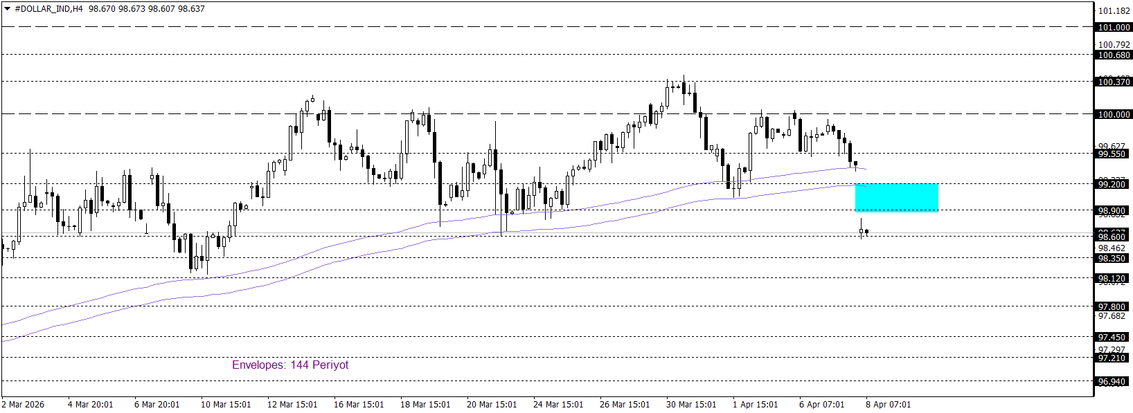 Klasik Dolar Endeksi, jeopolitik tansiyonun geçici olarak düşmesiyle sert gerileyerek 98,66 seviyesinin altına inmiş ve son dört haftanın en düşük düzeyini test etmiştir. Donald Trump’ın İran’a yönelik askeri tehditleri iki hafta ertelemesi ve “çift taraflı ateşkes” sinyali vermesi, risk iştahını destekleyerek dolar üzerinde baskı oluşturmuştur. Öte yandan artan enflasyon beklentileri ve lojistik maliyetlerdeki yükseliş fiyat baskılarının sürdüğüne işaret ederken, piyasa odağında Cuma günü açıklanacak ABD TÜFE verisi yer almakta ve bu veri enflasyon dinamiklerine ilişkin daha net sinyal sağlayabilir.