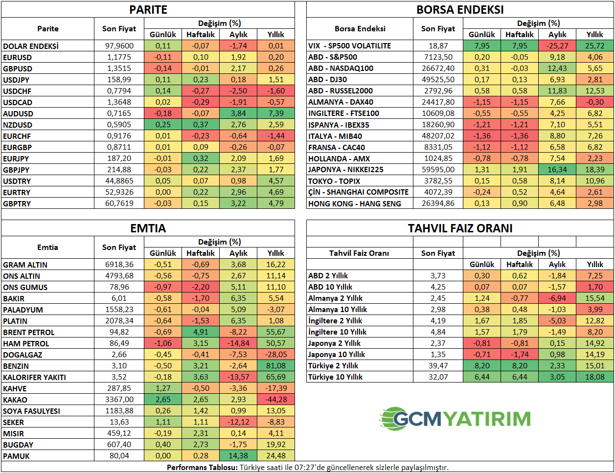 İlgili sayfada yer alan ekonomik takvim içeriği, güvenilir yurt dışı haber ve veri sağlayıcılardan temin edilmektedir. Ekonomik takvim içeriğinde yer alan haberler, haberlerin açıklanma tarihi ve zamanı, önceki, beklenti ve açıklanan rakamlarda gerçekleştirilecek olası değişiklikler, veri sağlayıcı kurumlar tarafından yapılmaktadır. Benzeri durumlardan kaynaklanacak olası değişimlerden GCM Yatırım Menkul Değerler A.Ş. sorumlu tutulamaz.