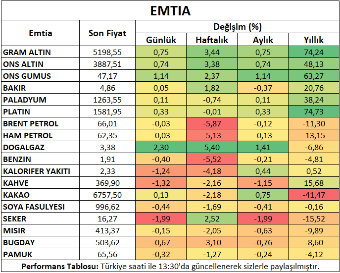 Ons altın, ABD hükümetinin kapanması ile artan güvenli varlık talebine bağlı olarak 1% üzerinde yükseliş sağladı. Gümüş tarafında yükseliş 1,5%’e ulaştı. Bakır 0,2% gibi zayıf bir kazanım sağladı.