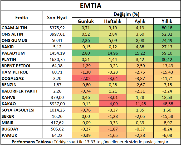 Paladyum güçlü rallisini bugün 2,5%’luk yükselişle sürdürdü. Haftalık kazanım 15%’in üzerine çıktı. Platin ise önceki günün kapanış seviyelerine yakın seyretti.